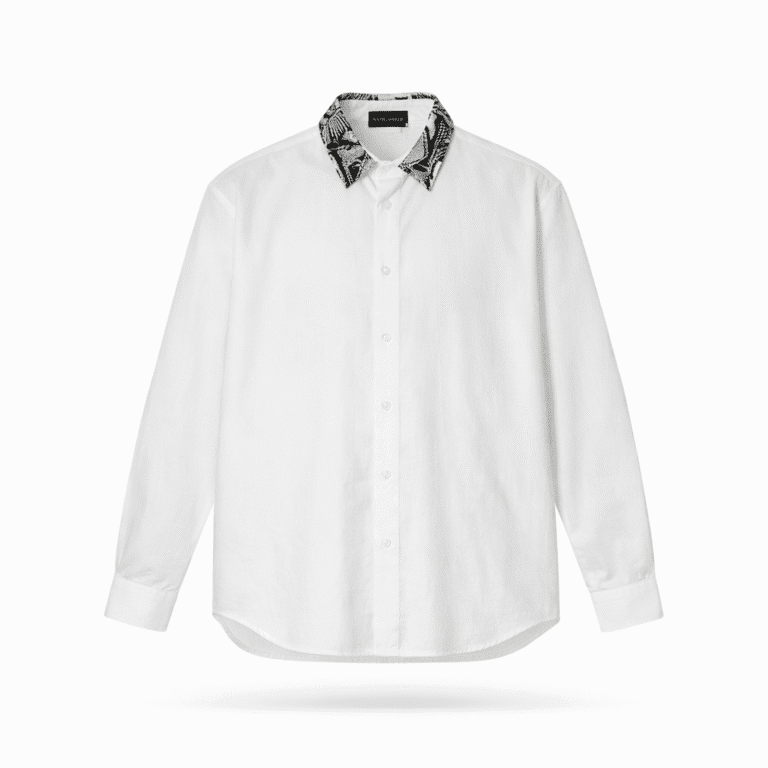 JRA White Shirt With Black RIpped Collar Shirt